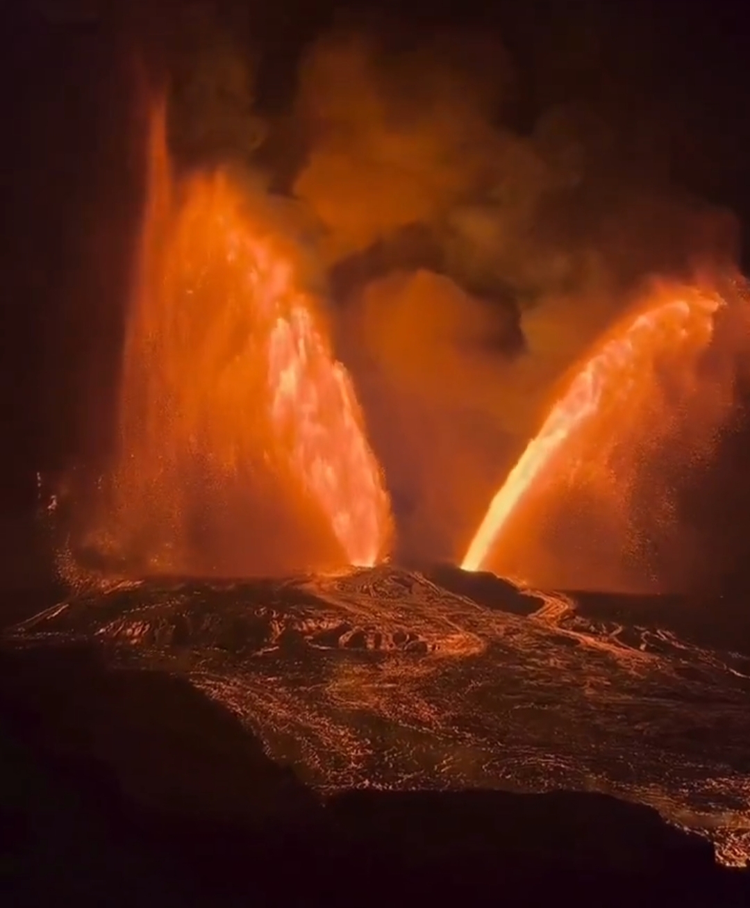 Imágenes virales mostraron fuentes incandescentes que superaron los 300 metros de altura, visibles desde varios puntos de la isla.